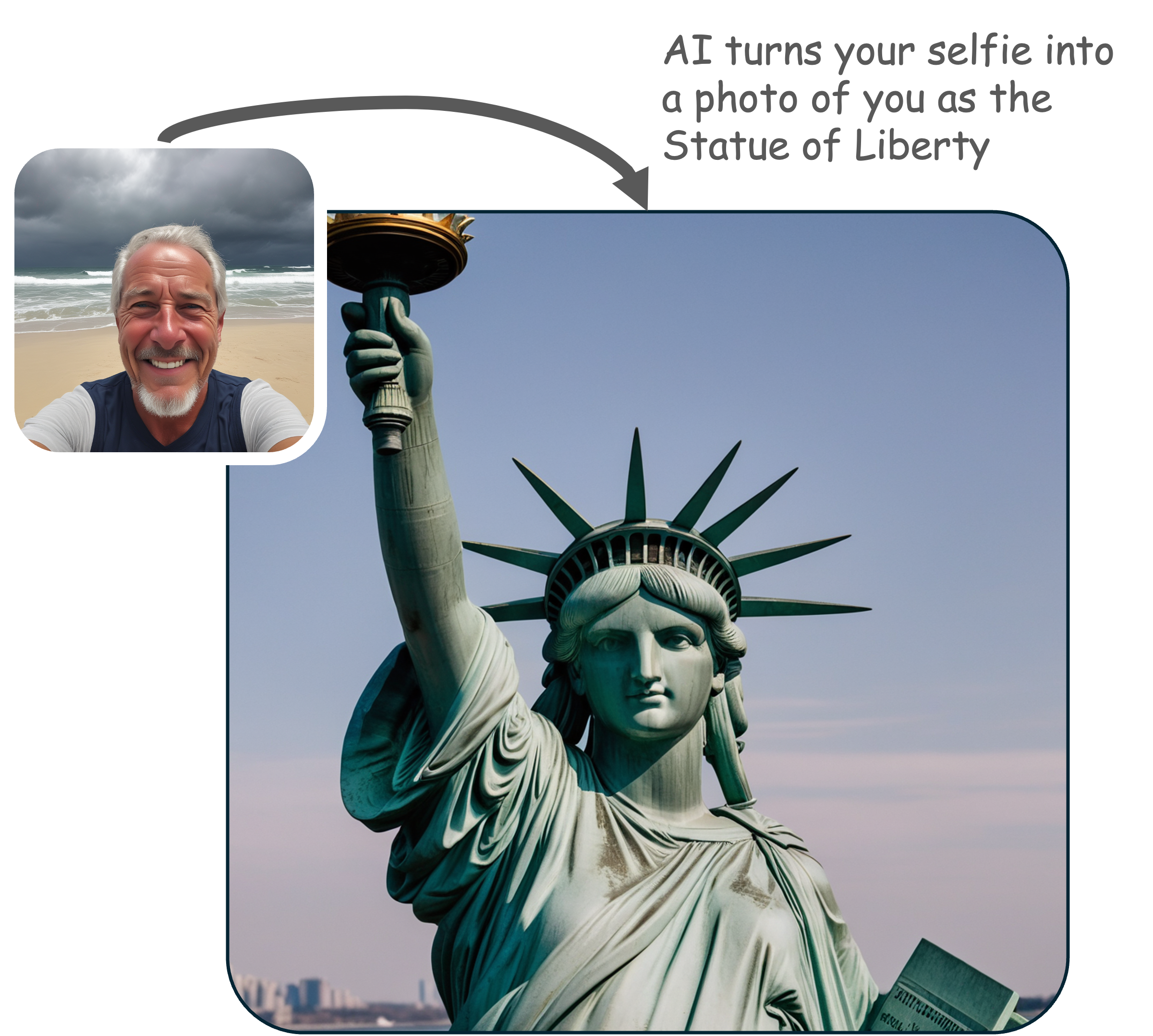 See yourself as the statue of liberty, swimming with polar bears, winning the Euro Cup, and more.